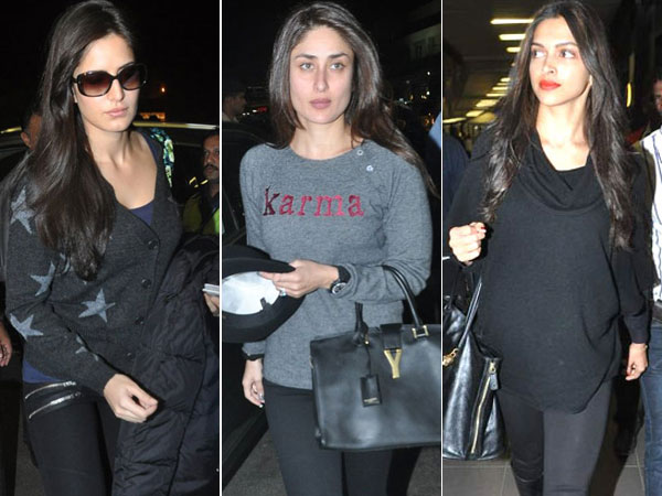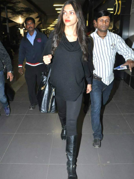 Deepika Padukone: Deepika dressed from head-to-toe in black as she returned to the city. Her black cowl eck sweatshirt looked stylish. We like how she teamed it with black skinny pants and boots.
