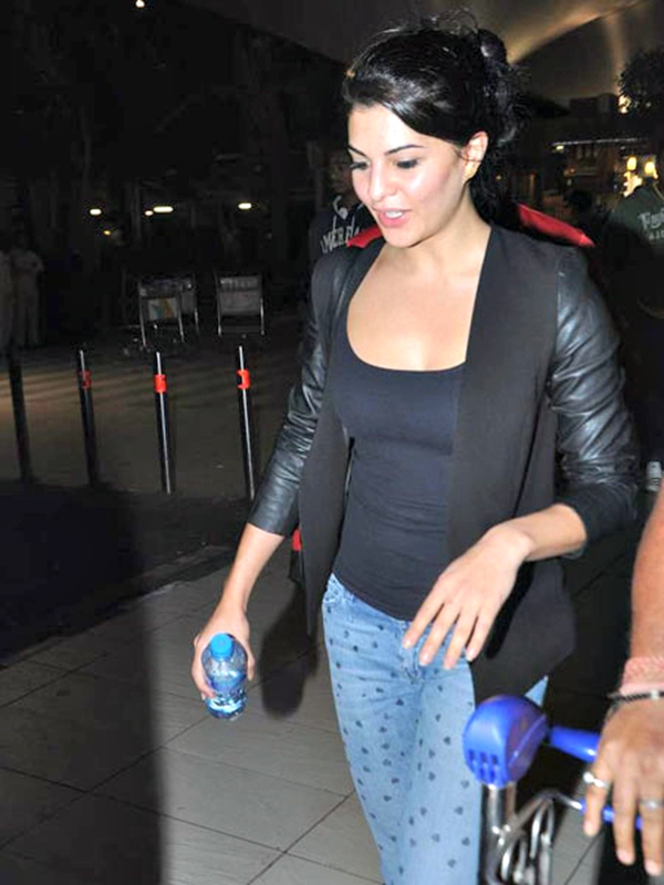 Jacqueline Fernandez: Jacky was spotted in a black jacket which she paired with a dark blue t-shirt and patterned denims. The look is fuss-free and cool, we think.